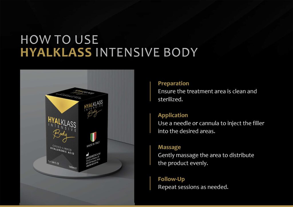 HyalKlass Body is a high-volume cross-linked hyaluronic acid filler, specially developed for body contouring and augmentation. Produced by IMEIK in China, it is ideal for buttocks, thighs, and large-area volume restoration.